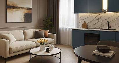 Мы создаём интерьеры, в которых чувствуется гармония формы и смысла, где каждая деталь на своём месте, а пространство работает на комфорт.