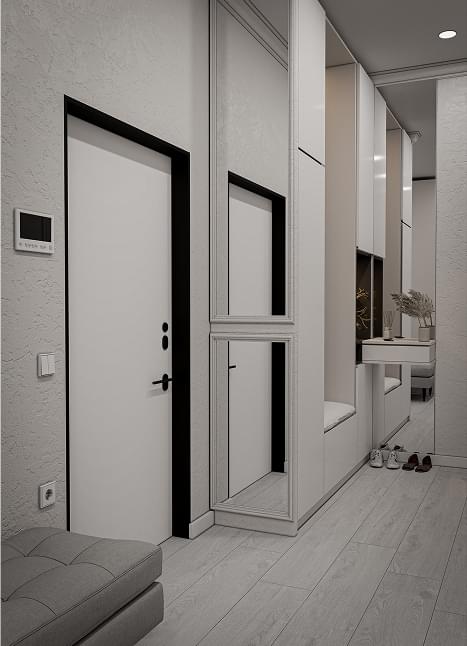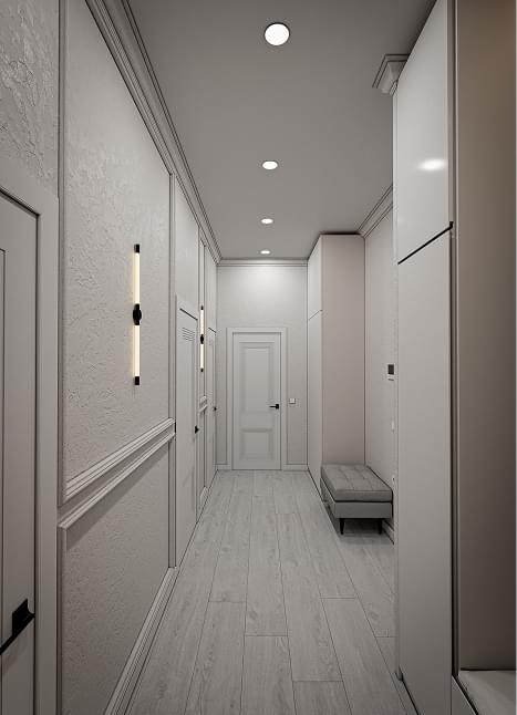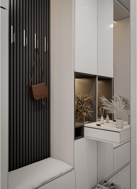 Холл стал не просто проходной зоной, а полноценной частью интерьера благодаря решениям по освещению и хранению.