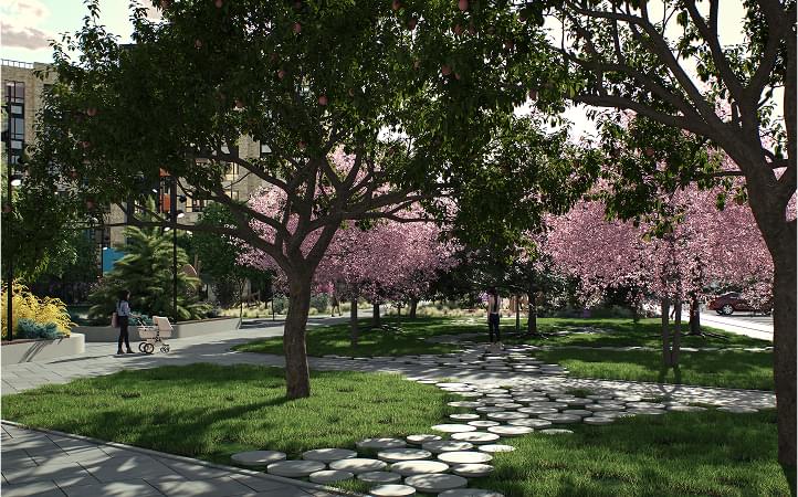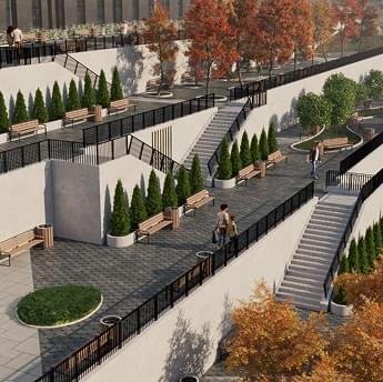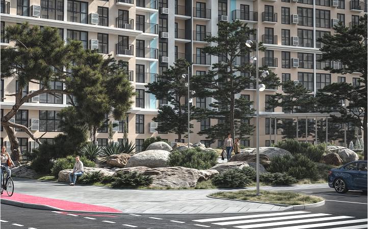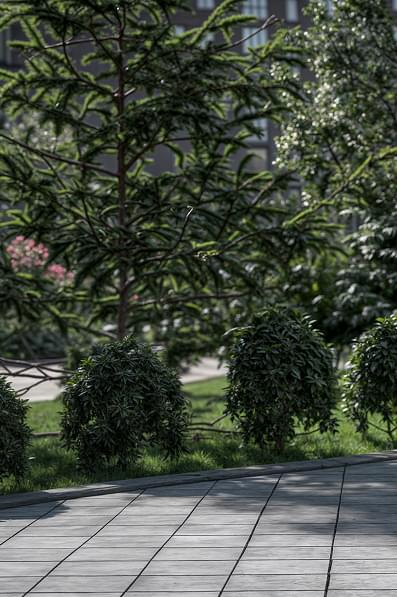Озеленение формирует визуальную гармонию, создаёт сезонную динамику и акценты, задающие ритм пространству.
